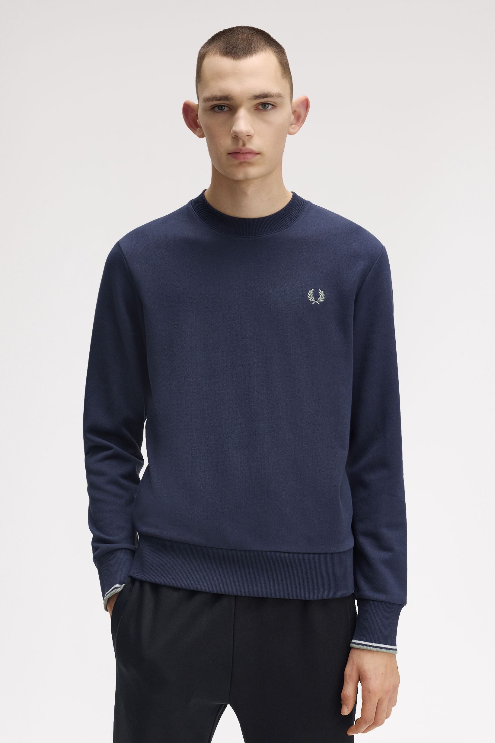 Fred Perry - CREW NECK SWEATSHIRT - Dark Airforce/Lightice/Bayleaf
