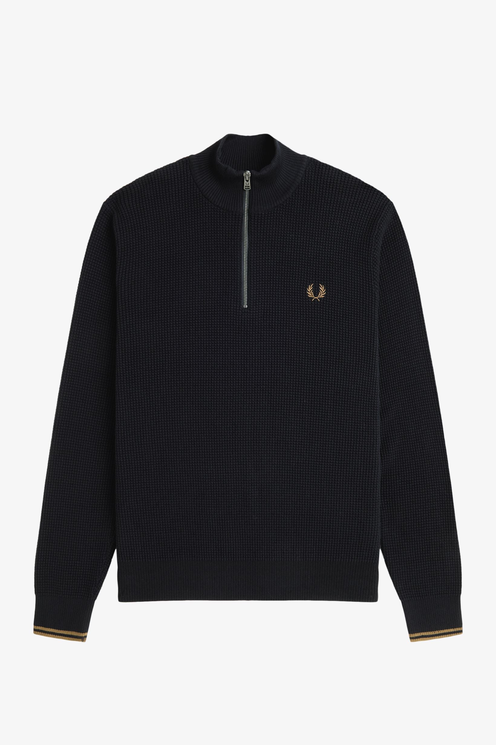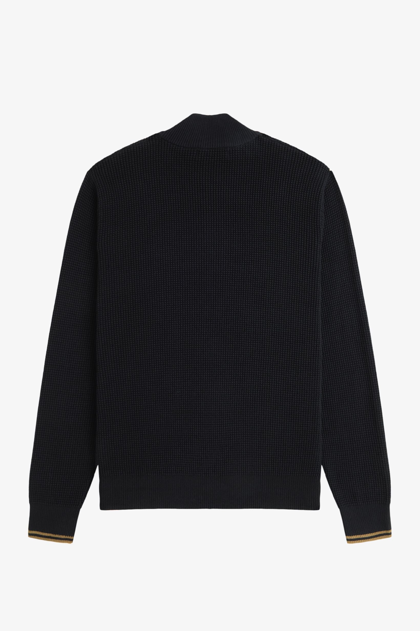 Fred Perry WAFFLE STITCH HALF ZIP JUMPER - Black